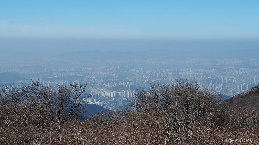 미세먼지 선이 뚜렷하고 그 아래 광주시가지가 가라앉아 있네요.
