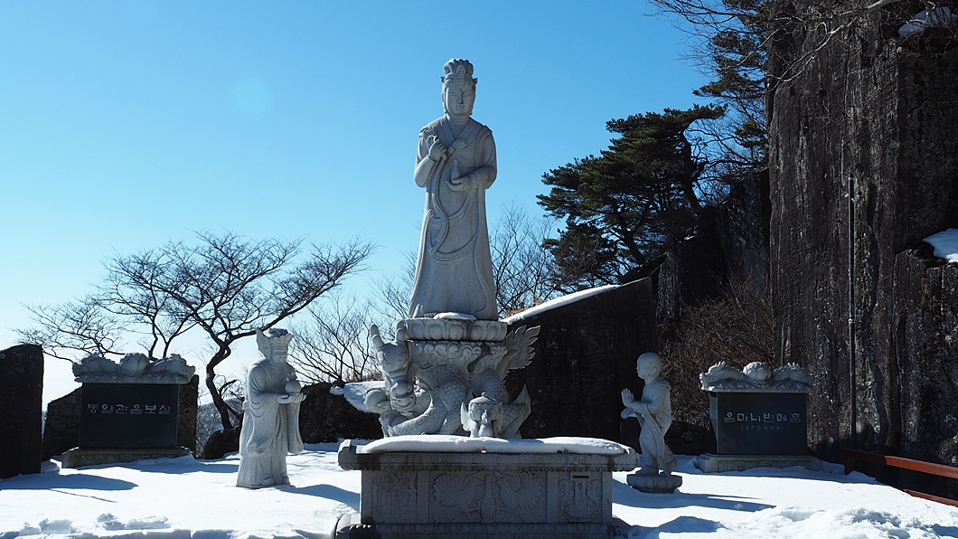 처사 한 분이 관음상 앞의 눈을 삽질로 열심히 치우고 있는데 그냥 놔두면 오늘 다 녹을 것 같다는 말을 입속에서만 맴맴 했답니다.