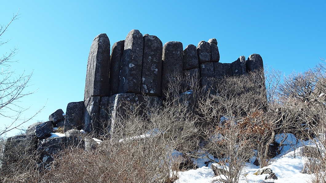규봉암 입구에 거대하게 솟아 있는 주상절리.