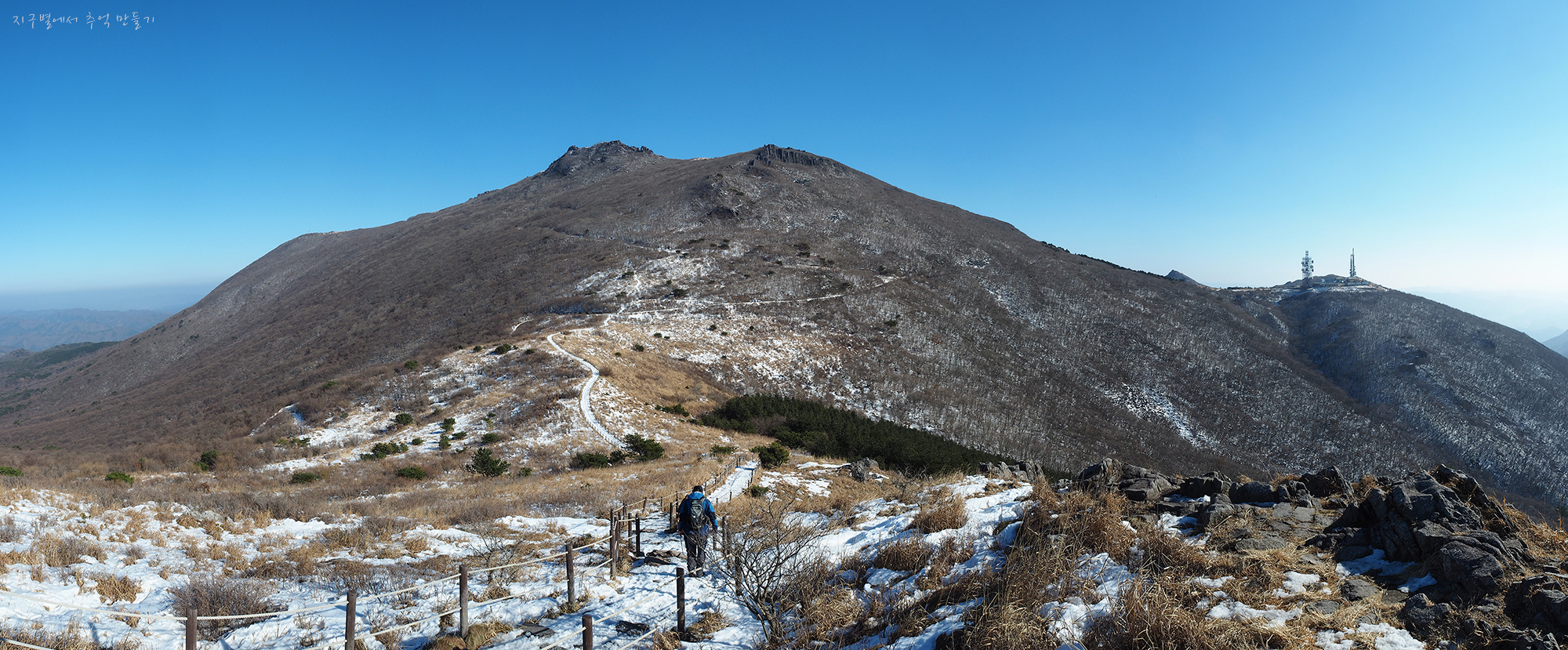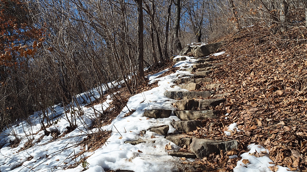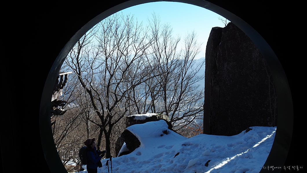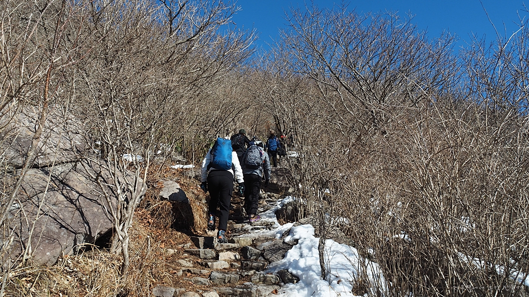 땀 잘 흘리지 않는 겨울 산행인데 이마에서 땀이 떨어지네요.