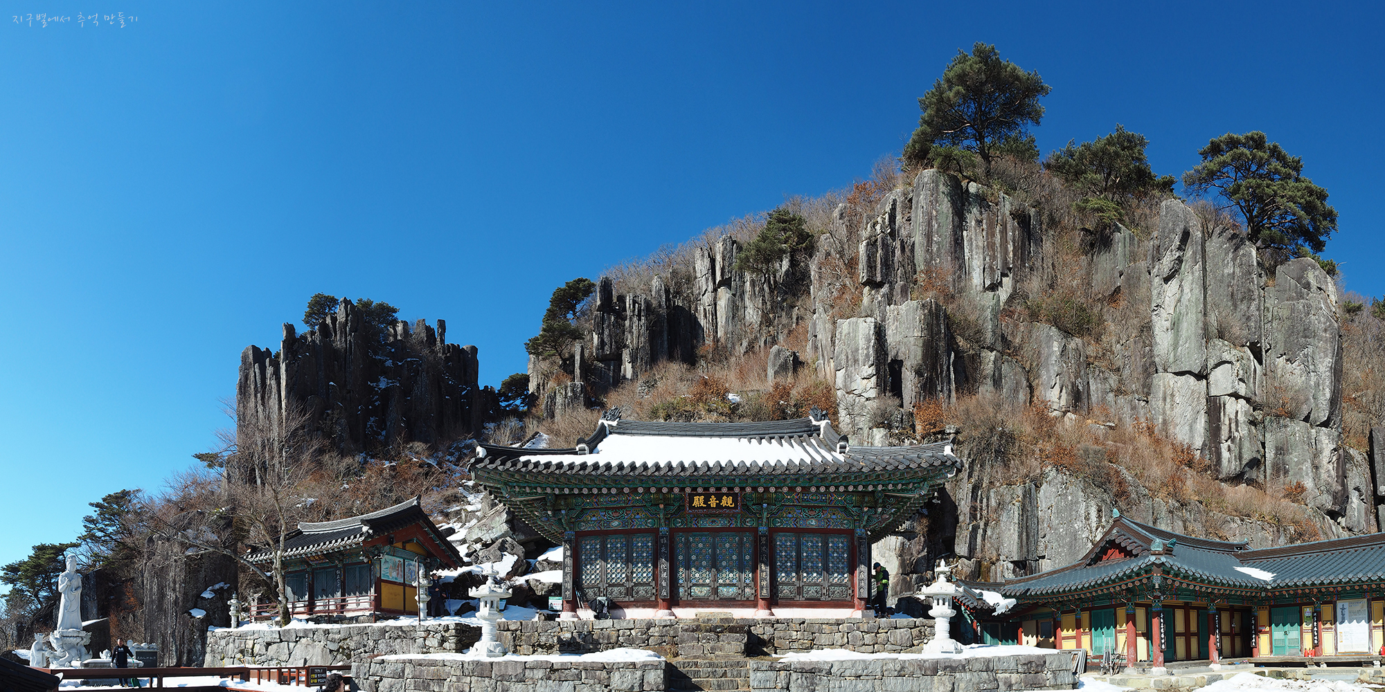 절집은 볼 것 별로인데 절 뒤로 병풍처럼 둘러쳐진 주상절리가 완전 명품이네요.