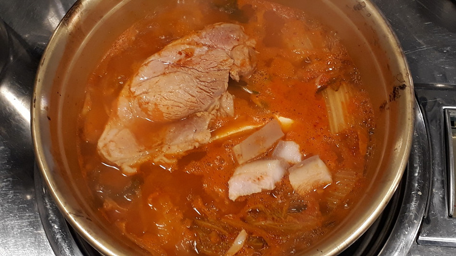 가끔 돼지고기를 듬뿍 넣고 김치찌개를 만들곤 합니다.