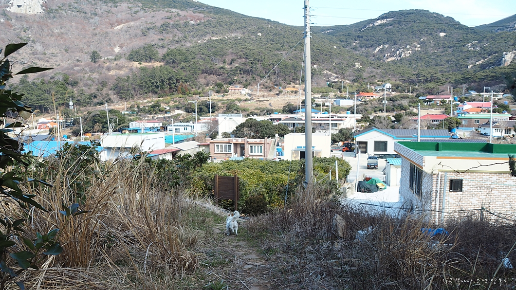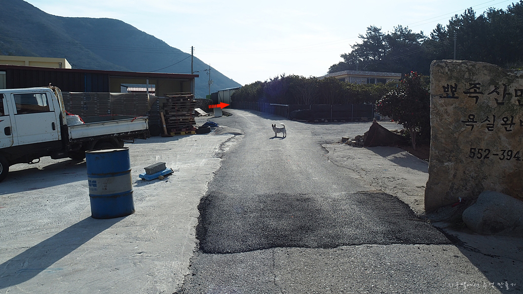 차를 해변가에 주차를 해 두고 들머리를 찾아 이리저리 헤매고 있는데(물어볼 사람이 한분도 보이지 않음) 앞쪽에 어디선가 나타난 멍멍이.