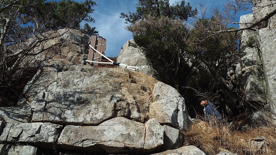 위로 보이는 바위 암봉에서 조금 더 올라야 정상입니다.