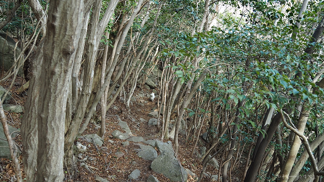 점돌이 따라 올라가는 동백 숲.