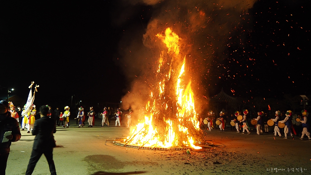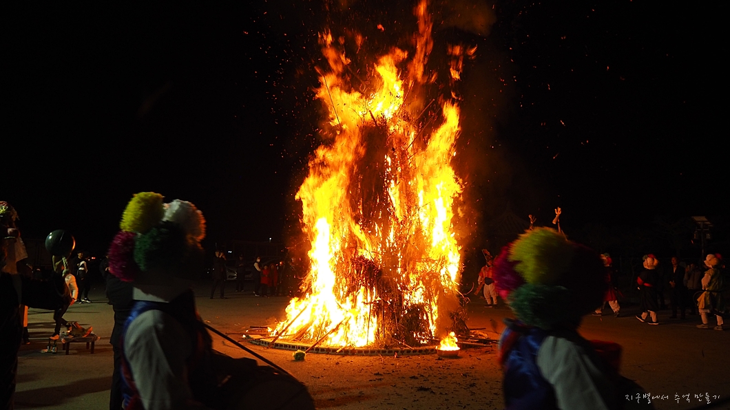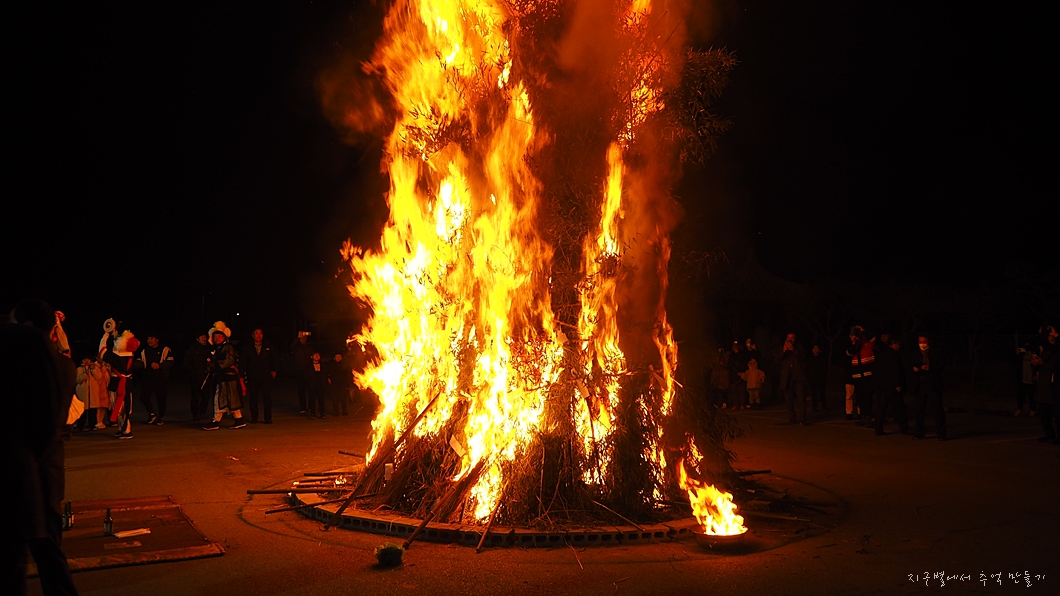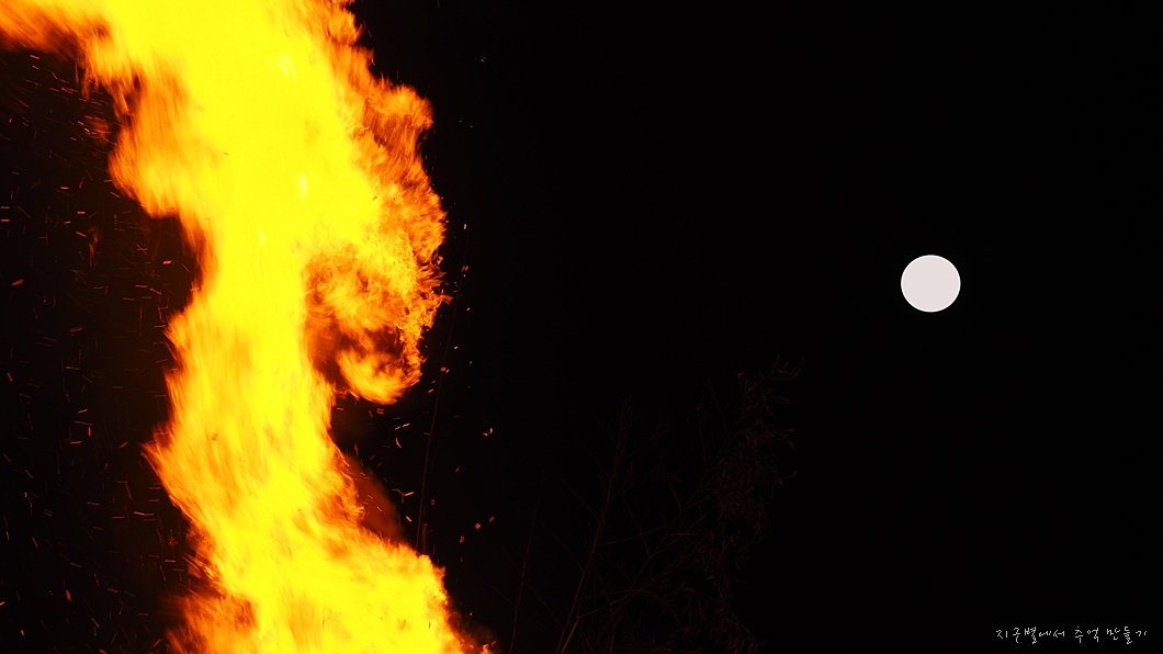 차가운 겨울밤에 달집은 너무나 포근하고 따스하게 온 마을을 데우고 있네요.