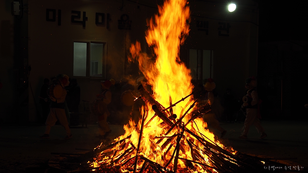 섬마을 외진 마을에서 정월대보름 행사를 옛날부터 순수하게 마을 사람들로 이제까지 이어져 내려오며 개최하고 있다는 게 놀랍습니다. 요즘 각 지자체서 열리는 정월 대보름 행사는 대개 보여주기식인데 비해 이곳은 말 그대로 진짜 마을의 안녕과 풍어를 비는 간곡하고도 각별함이 담긴 행사였답니다.