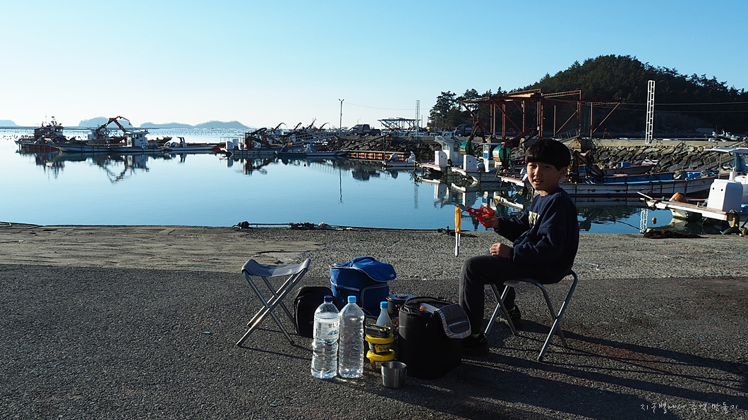 그동안 수차례 차를 배에 싣고 차박으로 섬 여행을 같이 다닌 지율이는 이제 모든 게 익숙합니다.