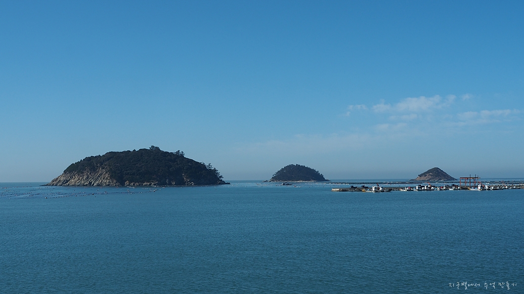 해남에서 송지지나 땅끝으로 가다 보면 우측 바다에 작고 예쁜 섬이 두 개 붙어 있는데 죽도입니다.