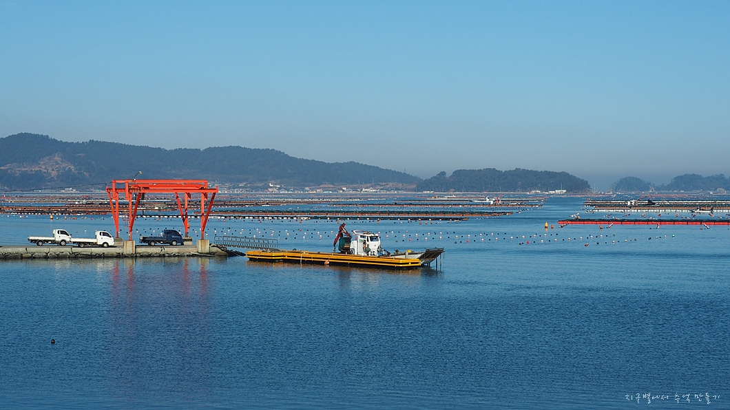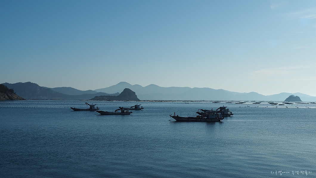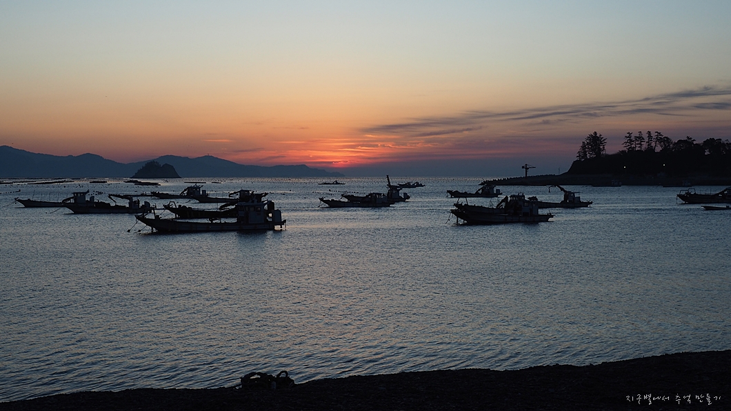 해는 천천히 기울고 있는데 배가 너무 빨리 가유.