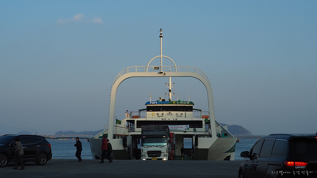 보길도는 노화도와 다리로 연결이 되어 있어 하선은 노화도 산양진항이랍니다.