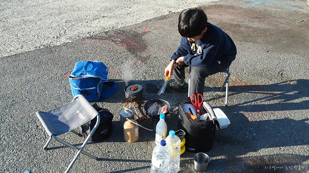식사 시간도 아닌데 배가 고프다고 하여 바닷가에다 전을 폈네유.