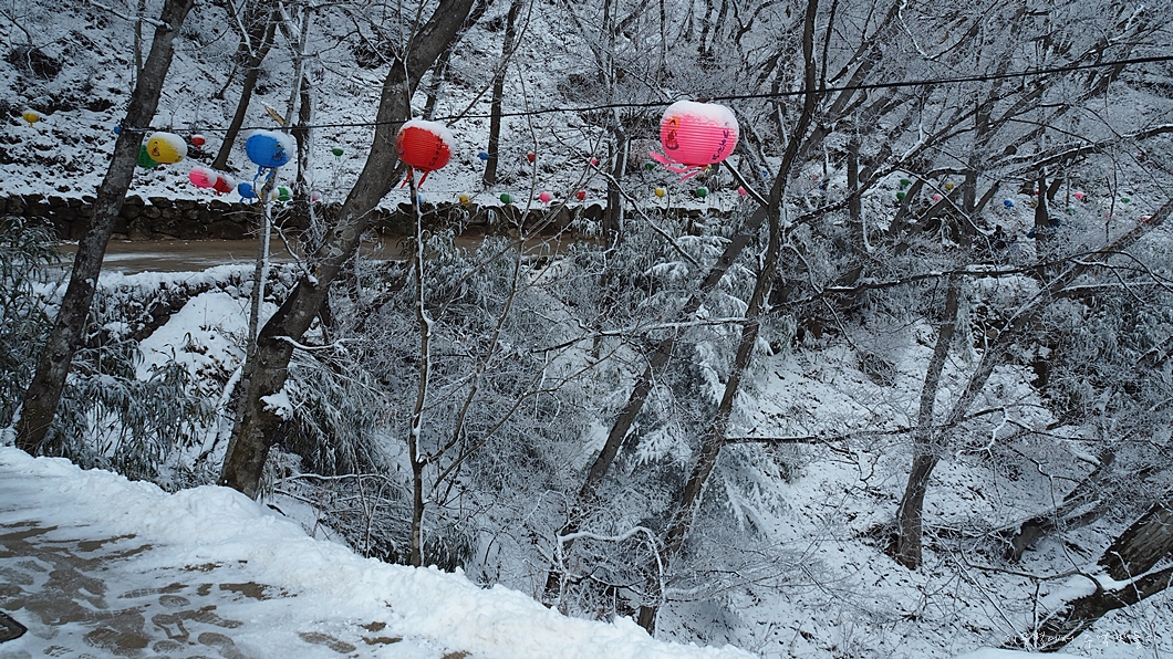 요사채 건물도 눈을 하얗게 쓰고 있네요.
