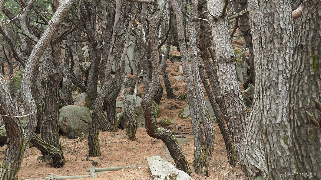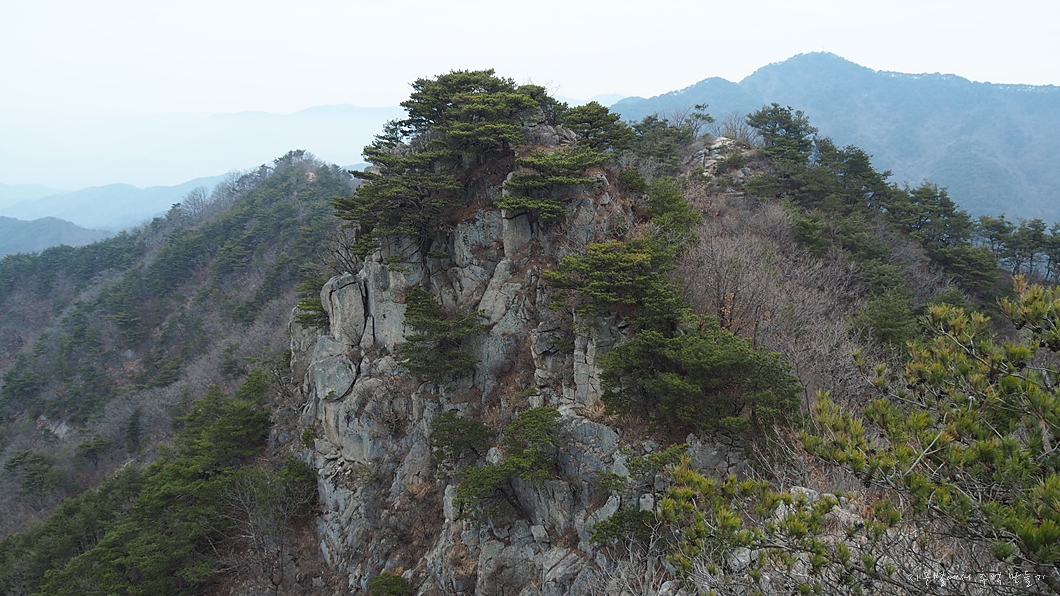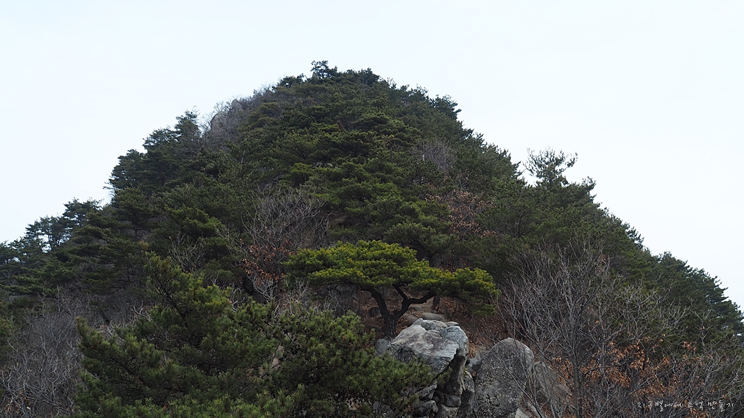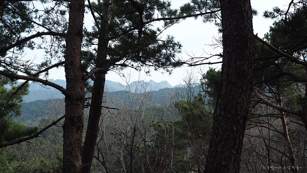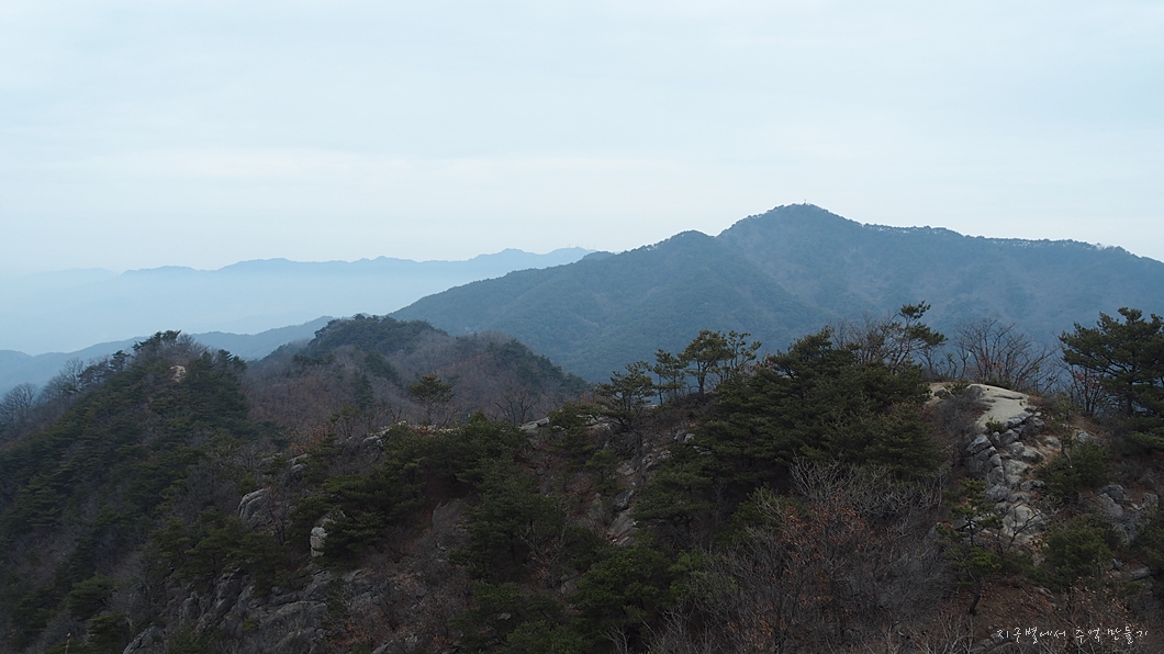 소나무 숲이 많은 육산으로 숲길 힐링이 좋으면서도 낙타봉 능선에서는 살짝 가파른 오르내림이 있어 산 맛도 즐길 수 있고 모든 봉우리 정상에서는 조망도 멋진데 날씨가 살짝 아쉽네요.