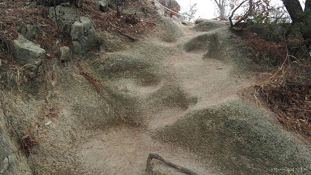 이 구간은 화강암은 전혀 없고 거의 마사토로 된 돌들이라 발길에 쉽사리 파인답니다.