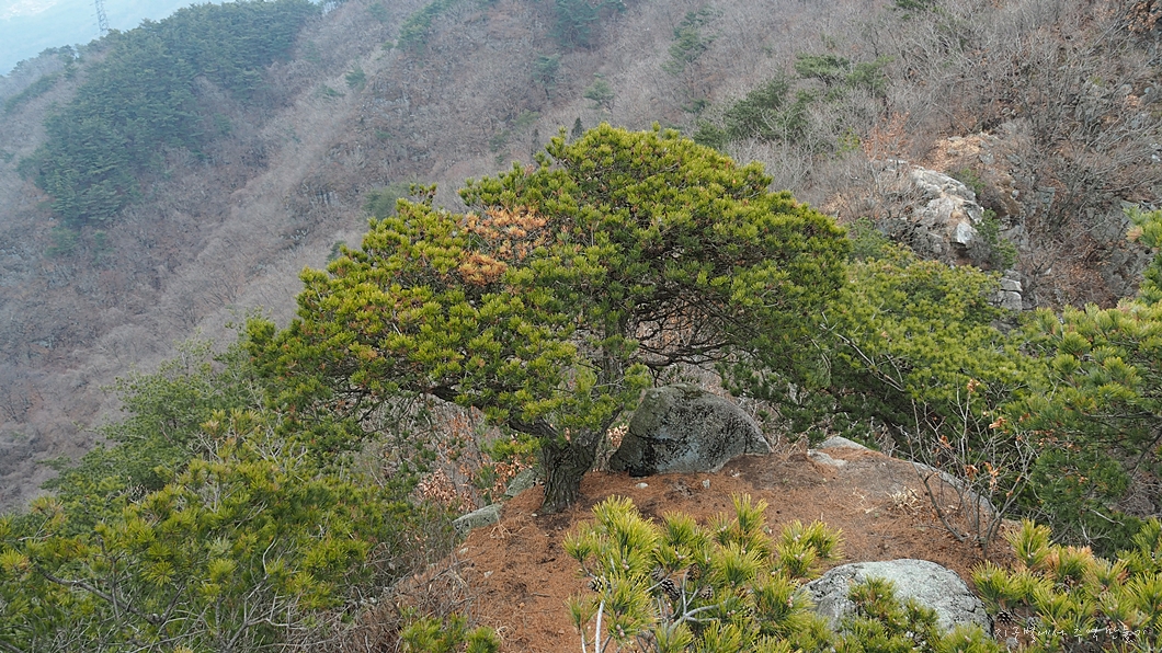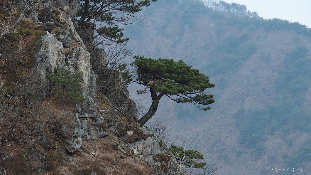 턱에 자라고 있는 예쁜 소나무가 눈에 들어옵니다.
