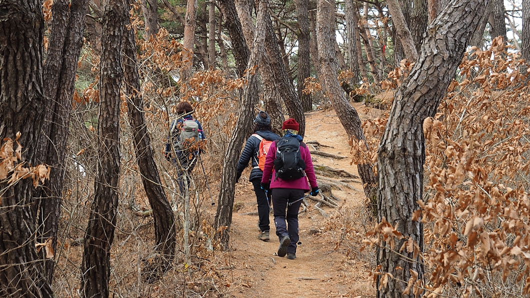 이곳부터 초례봉 정상까지는 2km 정도의 거리로 적당한 오름길에 소나무 숲길로 이어집니다.