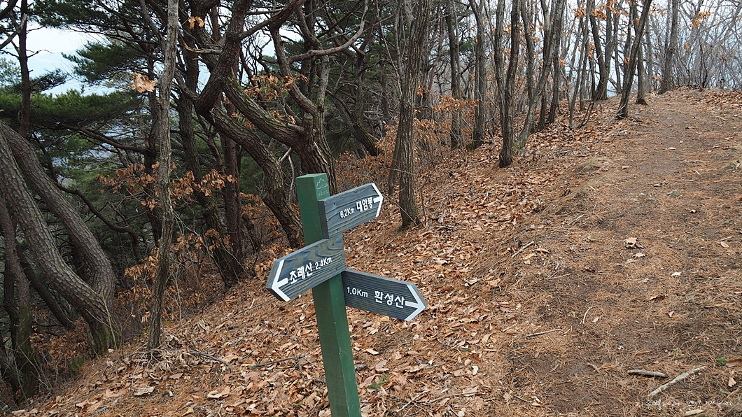 환성산까지 올랐다가 이 표시판 있는 곳까지 되돌아와야 합니다.