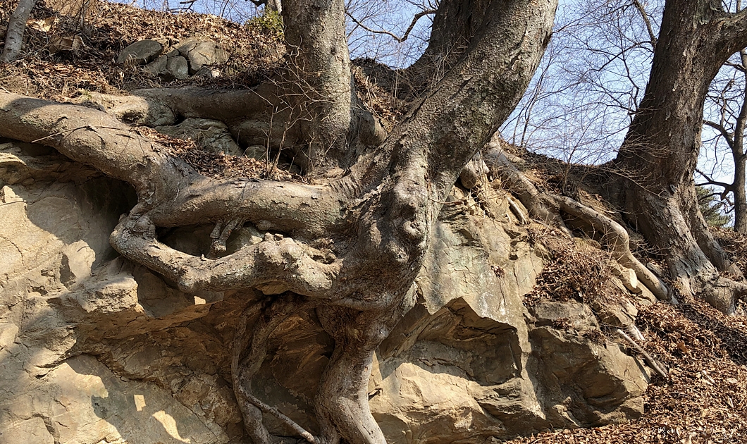 상단의 나무줄기가 엄청나게 꼬여 있습니다.