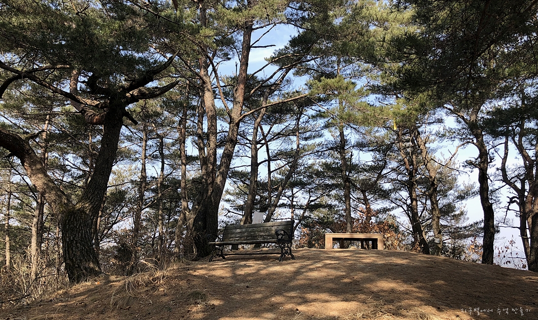 이런 쉼터가 곳곳에 마련되어 있어 소나무 숲 힐링으로 소풍 같은 가벼운 산행을 즐기기 좋은 산입니다.