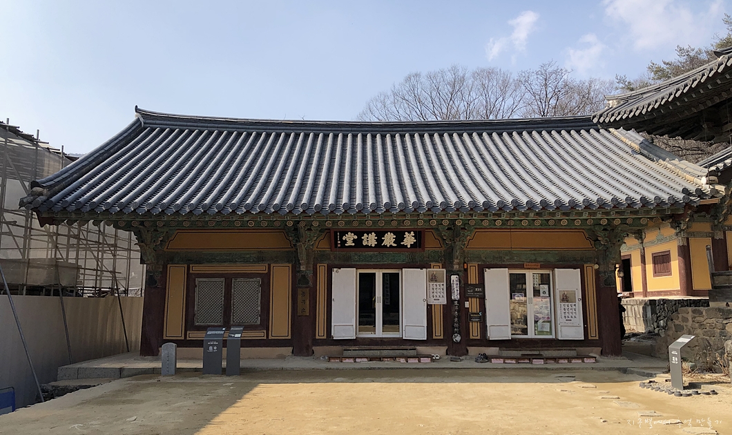 마당 좌측에서 보물로 지정이 된 화엄강당 건물이 있는데 지금은 종무소로 사용을 하고 있네요.