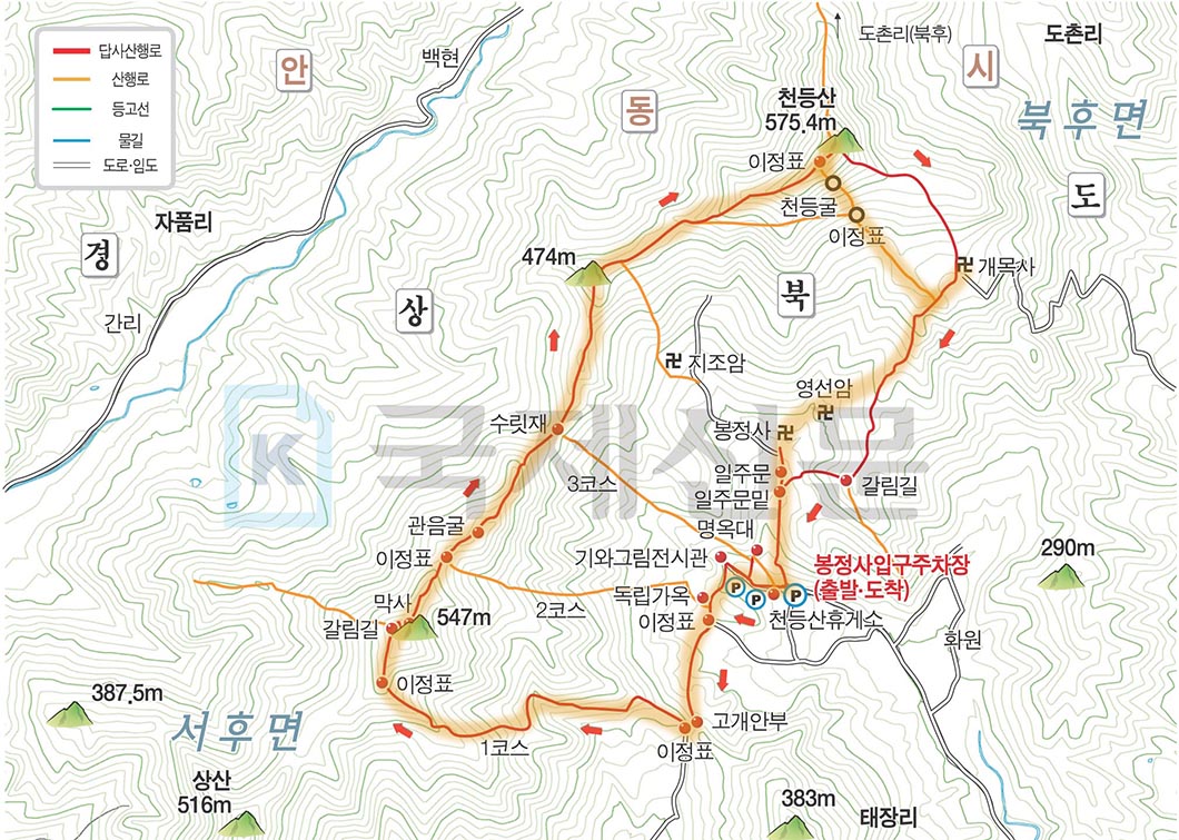 위 지도의 주황색 선을 따라 산행을 했는데 산행보다는 봉정사 관람이 목적이라 산행은 부록 개념으로 다녀왔습니다.
