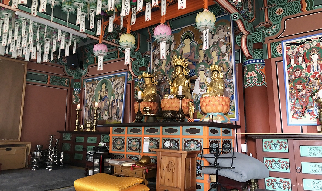 원통전에는 관음보살이 호위불과 함께 모셔져 있고 바닥은 특이하게 온돌시설이 되어 있다는데 등산화 벗기가 싫어서 들어가 보질을 못했네요.