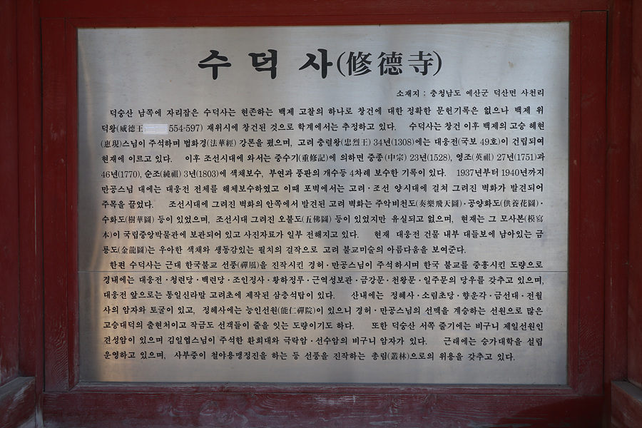 충남도지정 유형문화재 제103호인 수덕사 경내에는