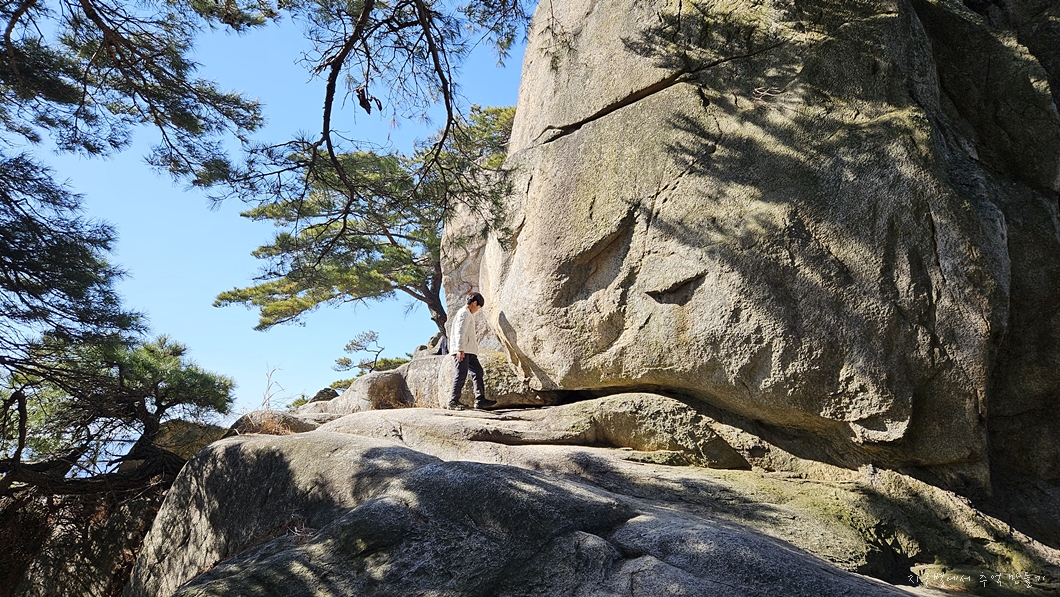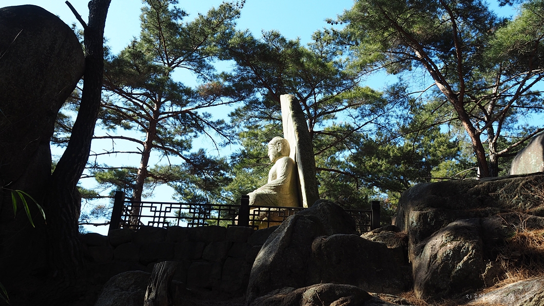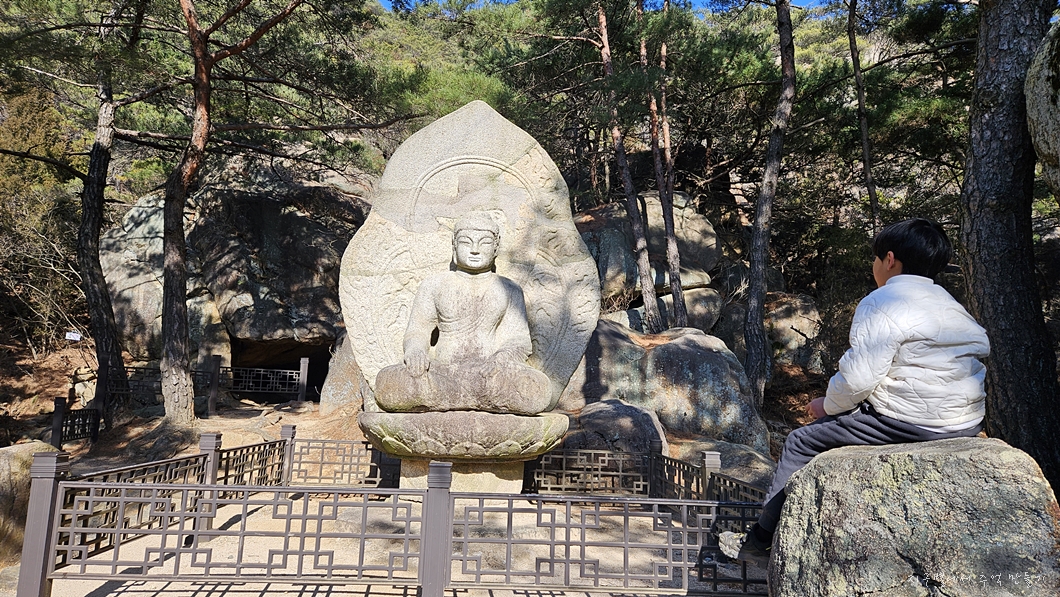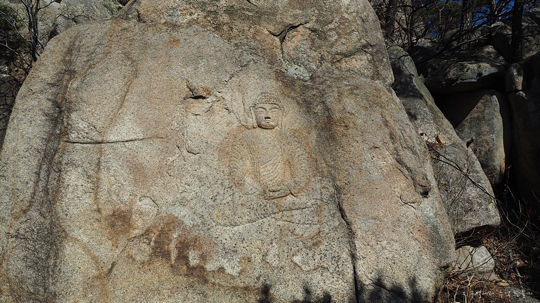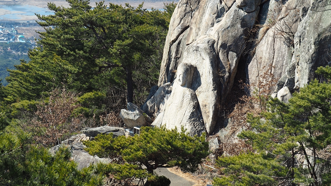 능선에서 아래쪽으로 내려다보면 마애석가좌불이 있답니다.