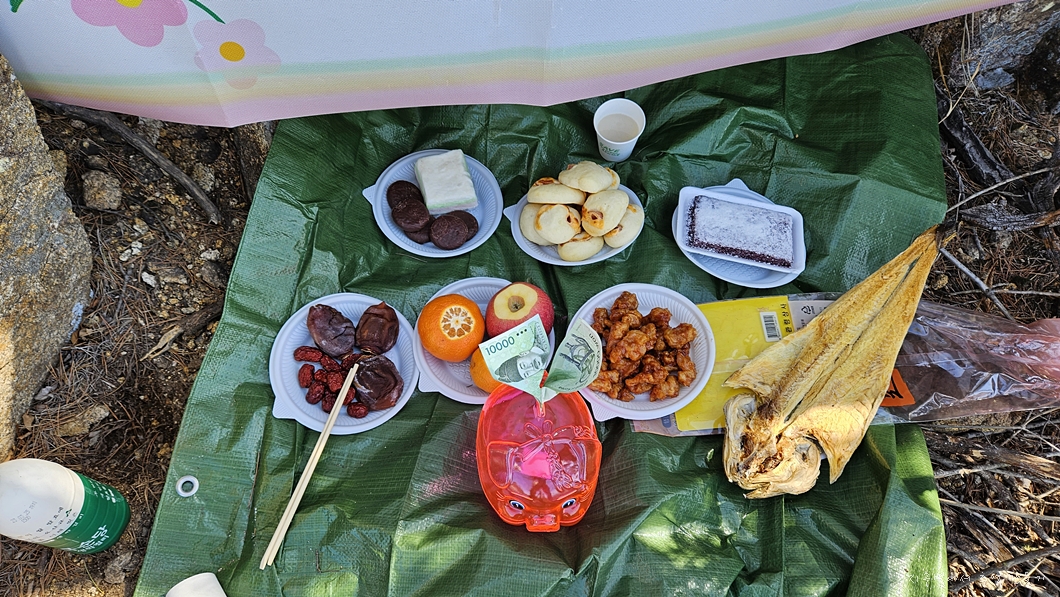 산에서 배우고, 대자연의 아름다움을 느끼며, 건강하게 산길을 걸어 안전산행을 하게 해 주신 것에 대하여 마음을 담아 조촐하게 음식을 마련하였으니 이 자리에 오셔서 즐겁게 받아 주시옵소서.