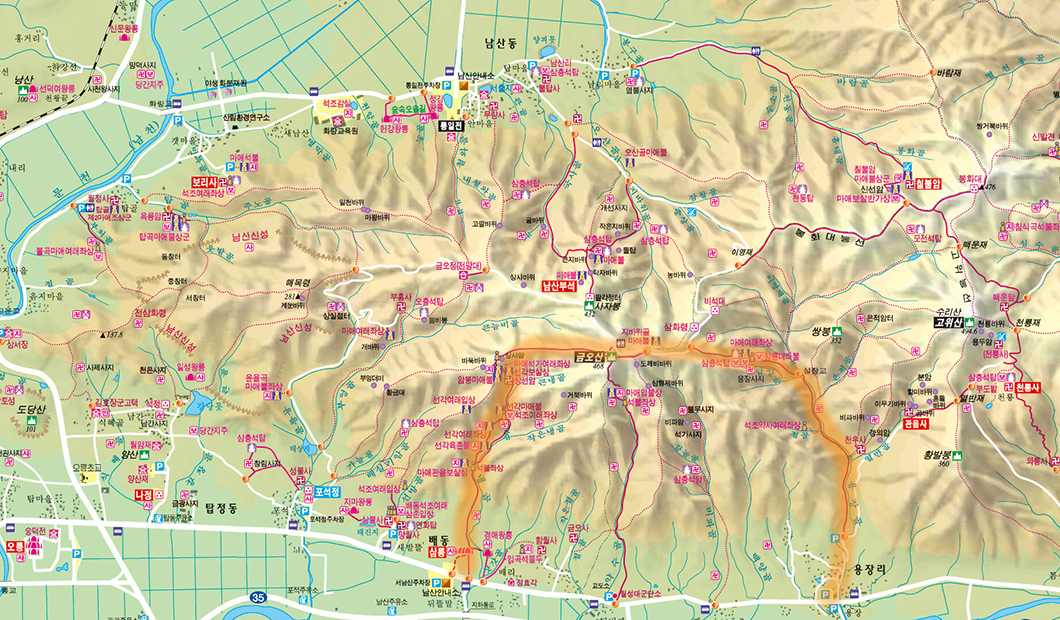경주 남산 산행지도