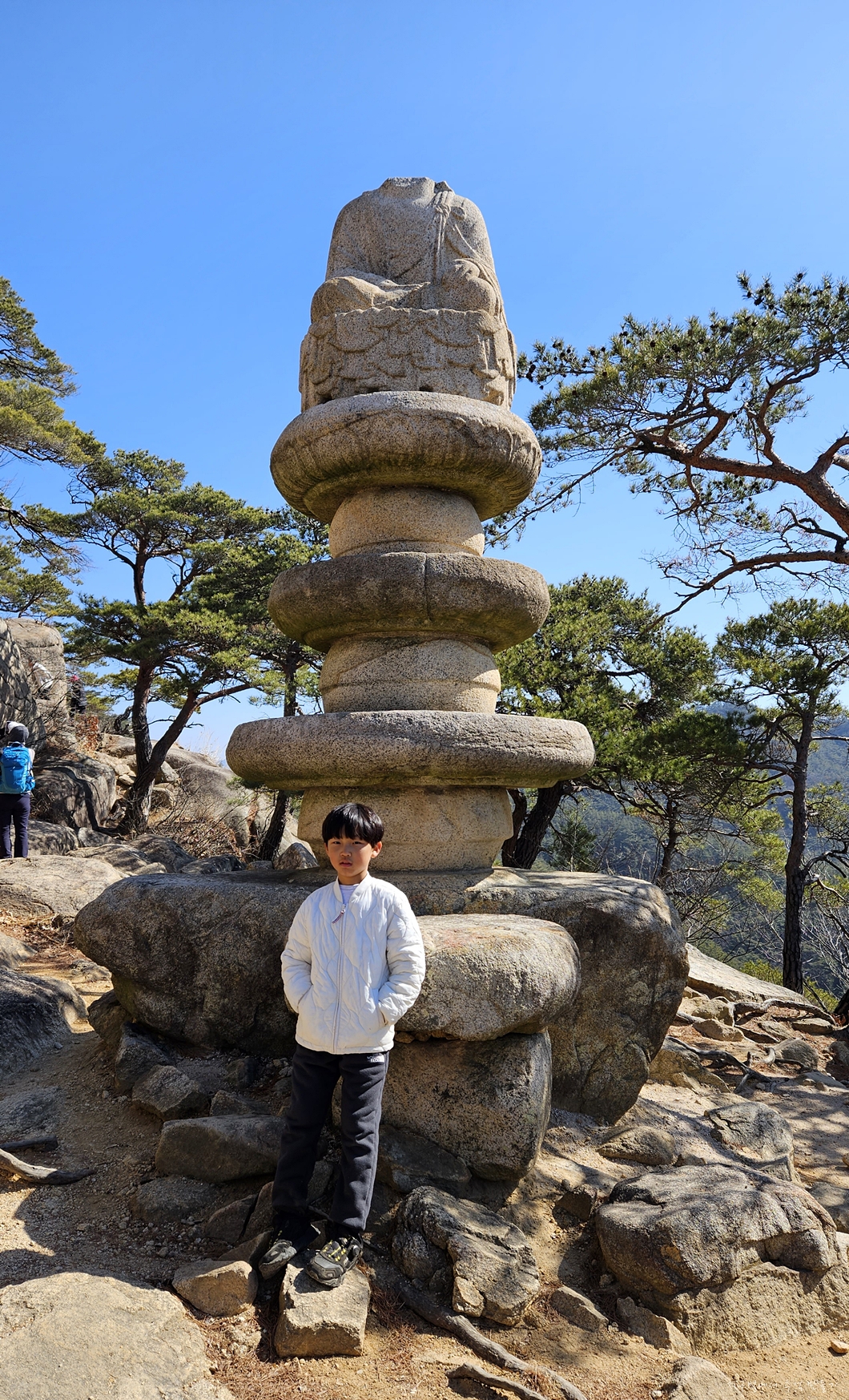 시원한 조망이 트이는 자리에 세워졌는데 아랫동네에서 작업하여 헬기로 옮기지는 않았을 것이고 이곳 현장에서 작업하여 쌓았을 것인데 그 방법이 도무지 궁금합니다.