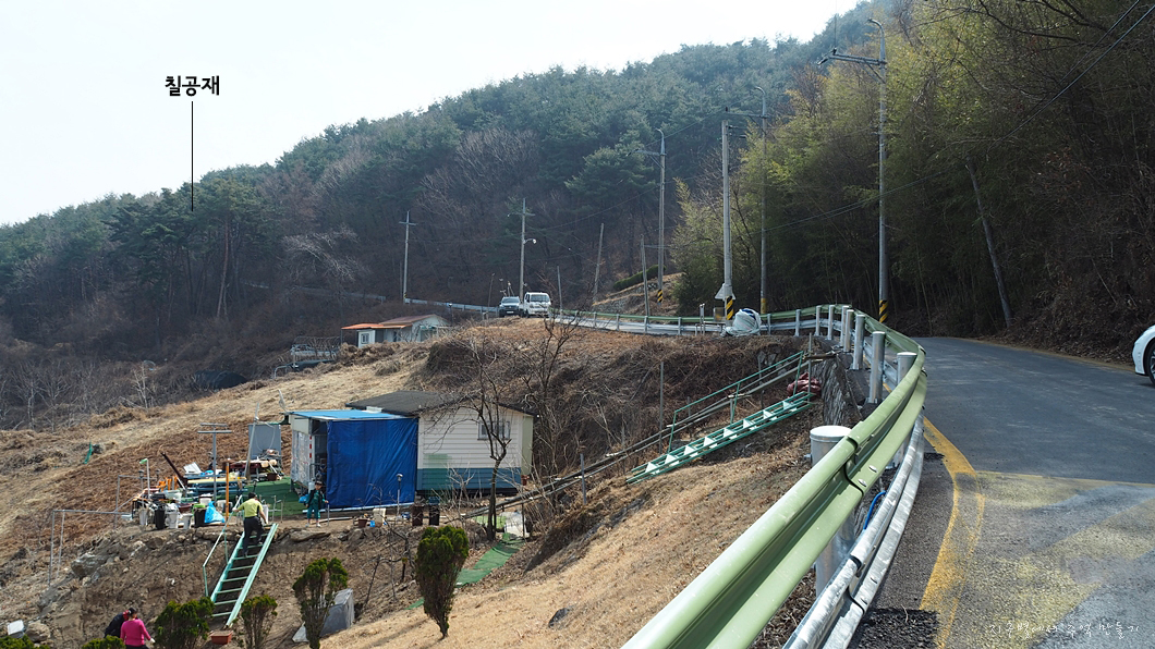 이곳에서 산행 쉽게 하려면 칠공재 반대 방향 우측 도로를 따라 주~욱 올라가면 정상입니다.