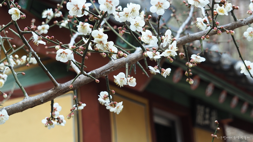 용왕님이 보살폈는지 그늘지고 추운 산골인데도 일찍 매화가 피었네요.
