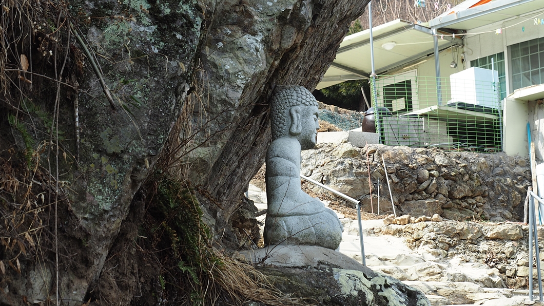 바위 앞에는 기도를 한 흔적들이 있고 물이 고인 샘터가 있네요.