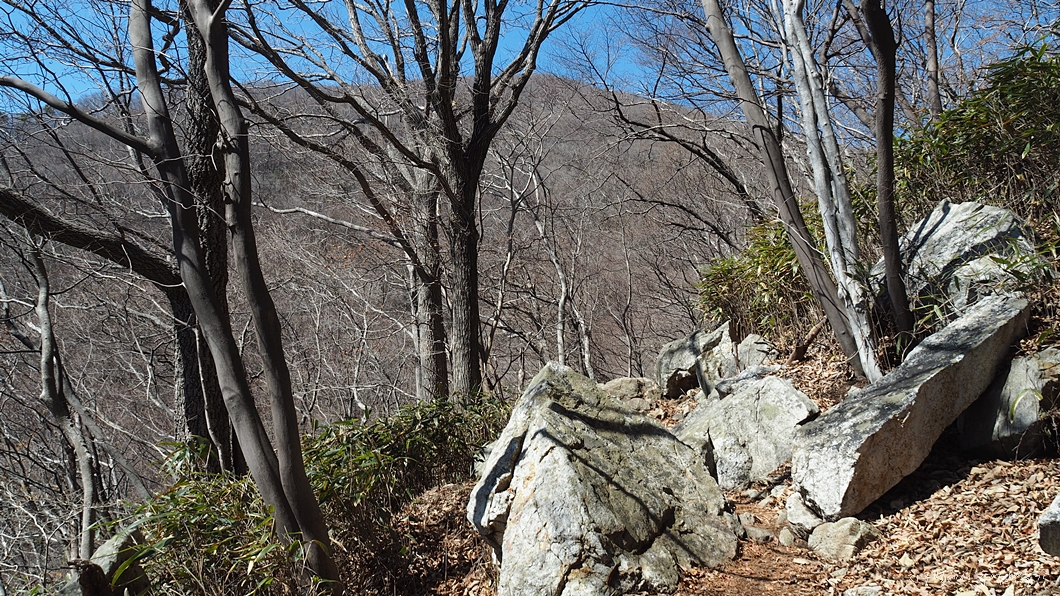 작은 굴목재를 거쳐 장박골 계곡으로 길게 하산합니다.