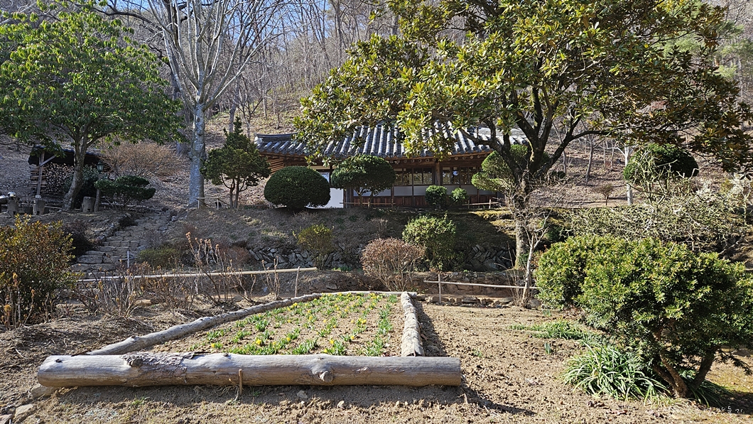 불일암에서 내려다보는 텃밭 풍경.