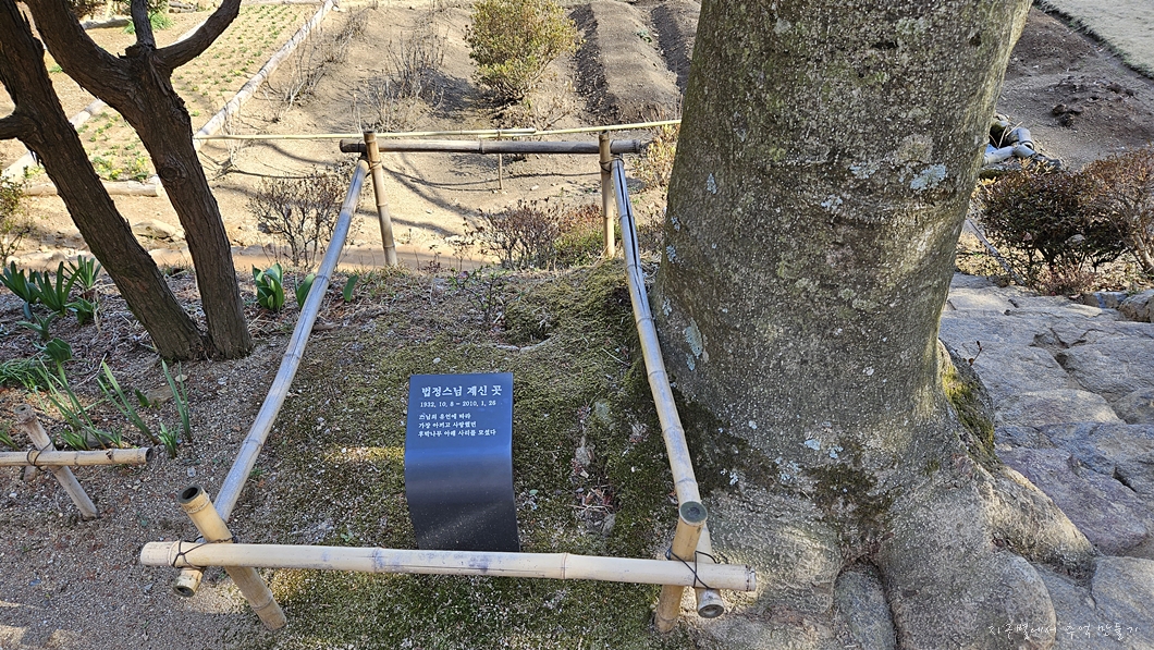 이곳 불일암 앞 후박나무 아래에 모셔져 있네요.