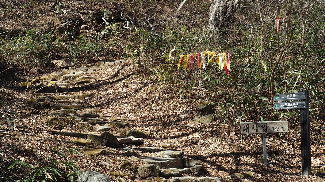 중간에 만나는 대각암에는 노란 산수유가 곱게도 피었네요.