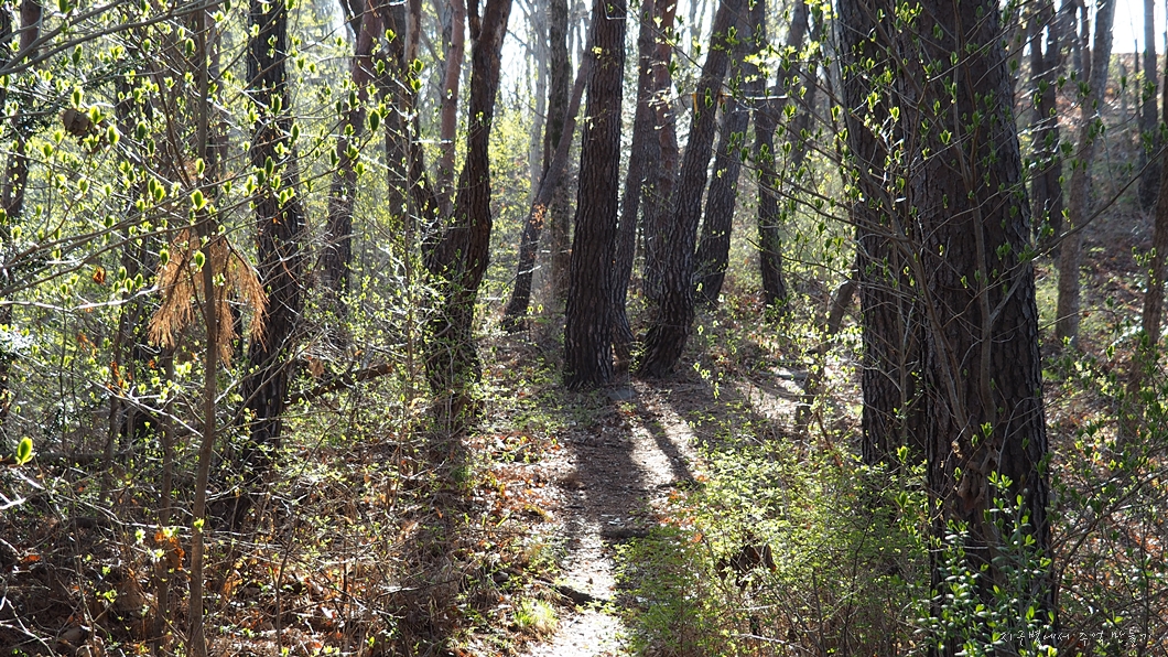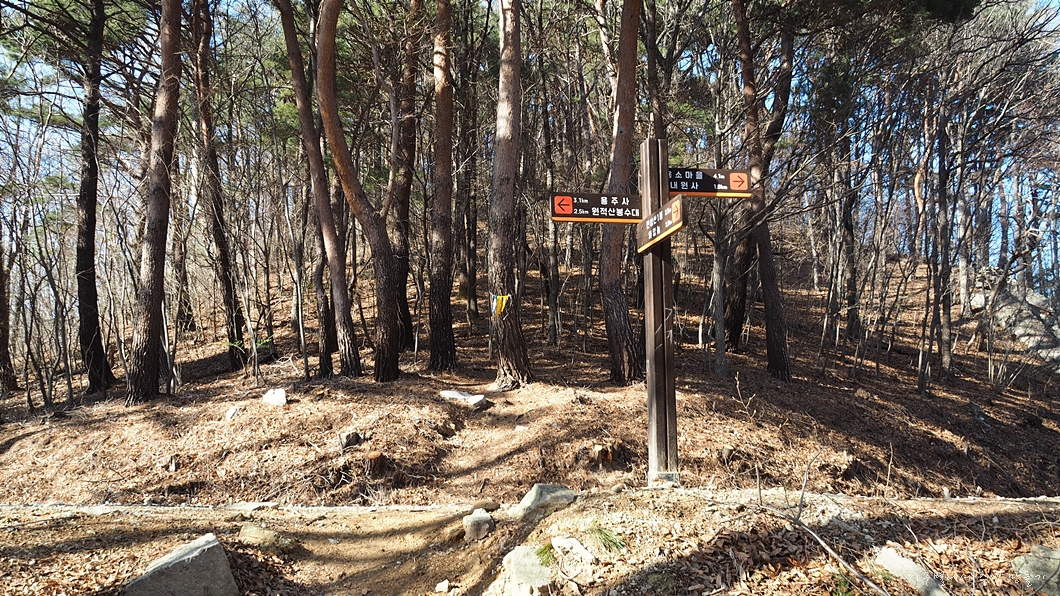 산길 중간에 가끔 임도를 만나게 되는데 임도 따라 거닐어도 되는 곳이 있고 임도 이탈해야 되는 곳이 있는데 리본이나 안내판을 참고하면 될 것 같네요.