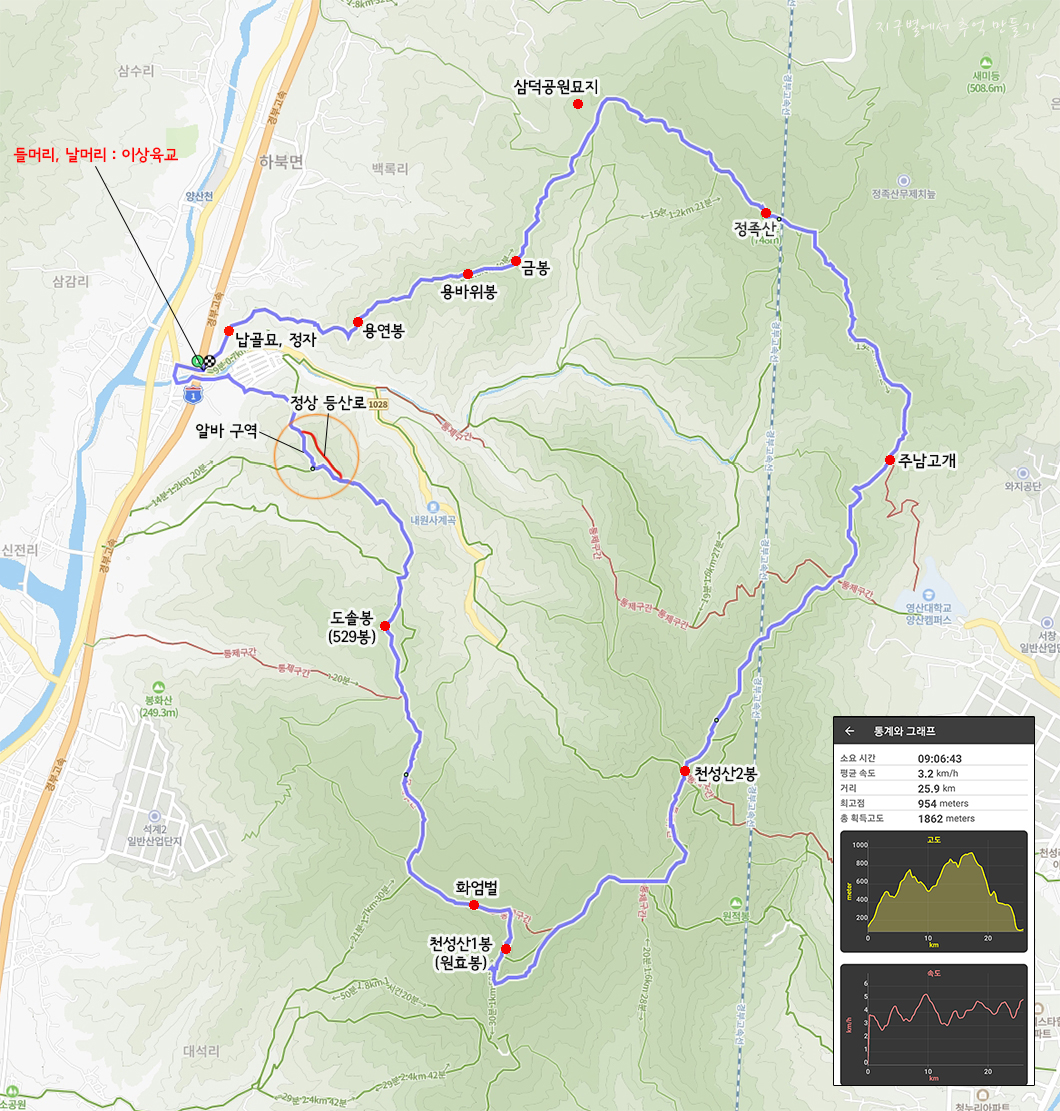 들머리가 내원교라고도 하고 이상육교라고도 하는 고가교인데 네비에 '이상육교'를 목적지로 찍어 아침 일찍 달려갔답니다.