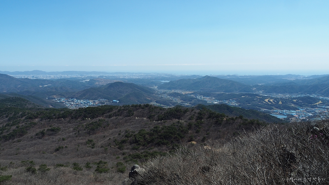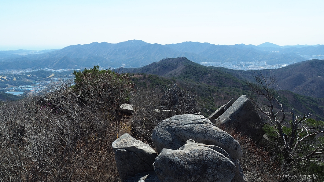 남쪽 천성산 방향 조망이 아쉬웠는데 활짝 열리는 조망바위가 있네요.