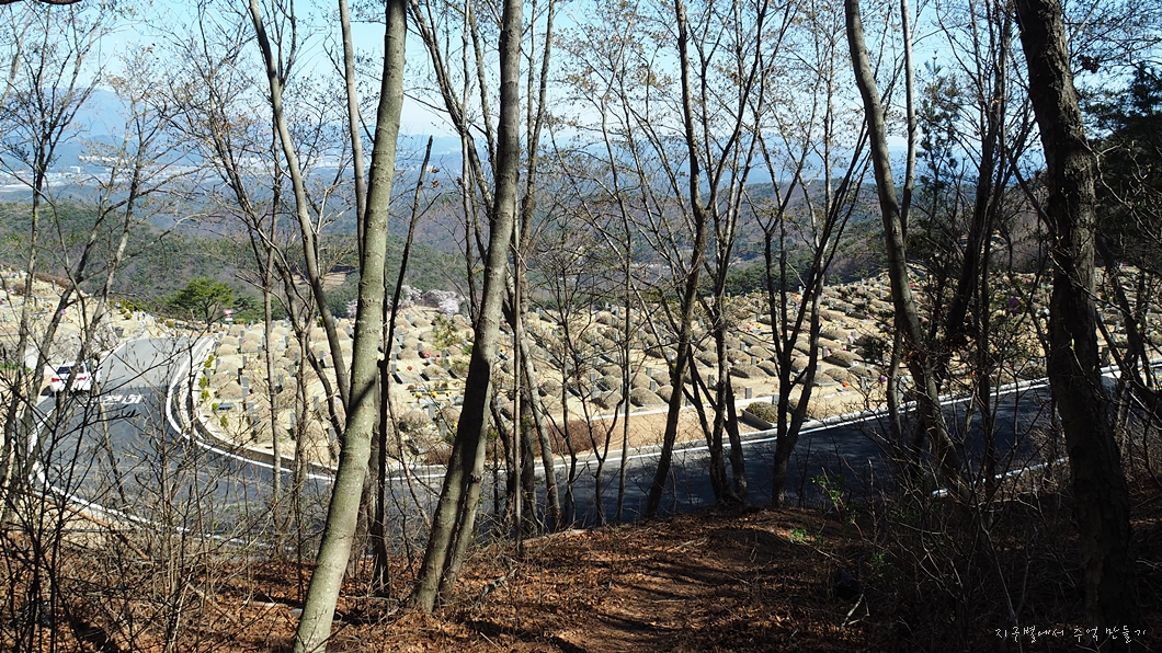 열씸히 오르고 있는데 갑자기 옆이 휑하더니 돌아보니 공원묘지네요.
