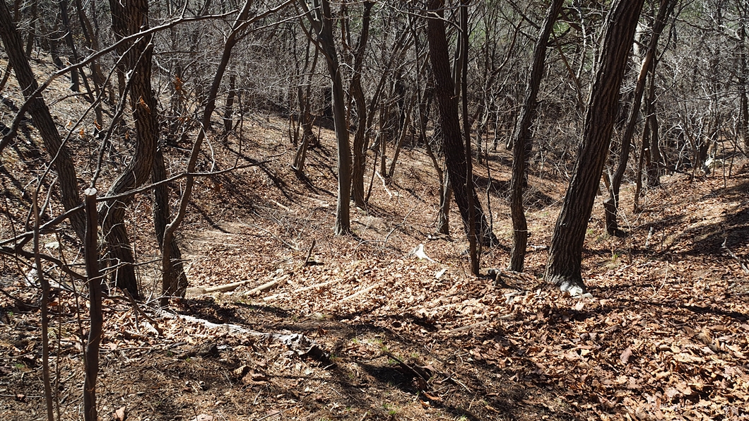 경사가 심하지 않는 숲길이 조금씩 경사가 생기는 곳도 있으면서 계속 올라가는 구간입니다.