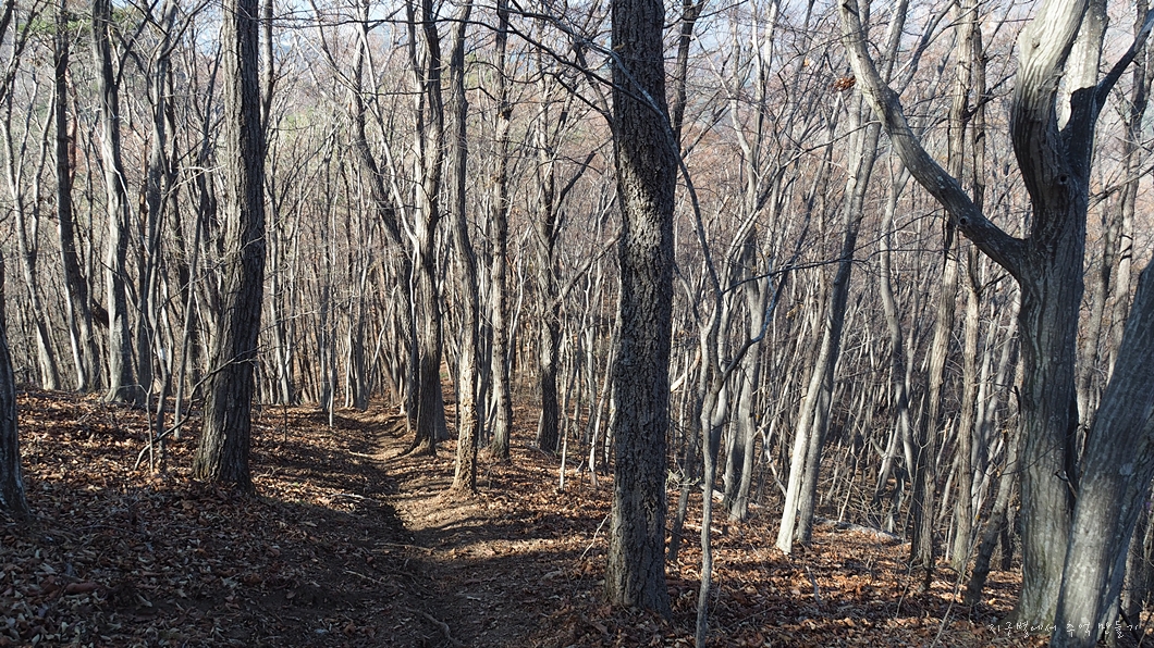 이곳부터 내리막 구간은 낙엽이 가득 쌓인 급 경사 내리막 구간.