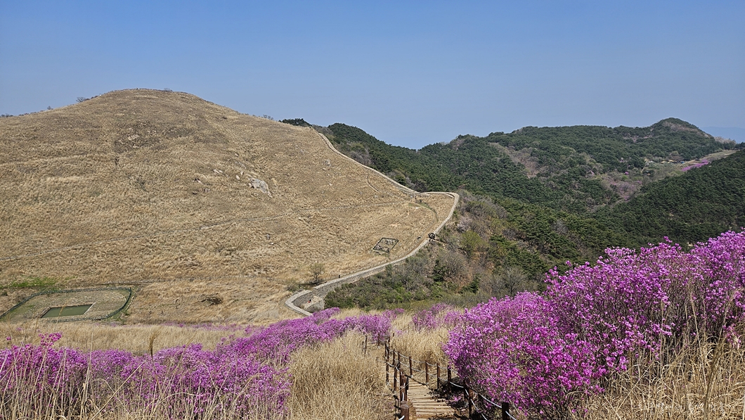 이전에는 서문 이쪽 방향의 진달래 풍경이 참 좋았는데 이상한 성벽을 만들어놓는 바람에 버려 놨습니다.
