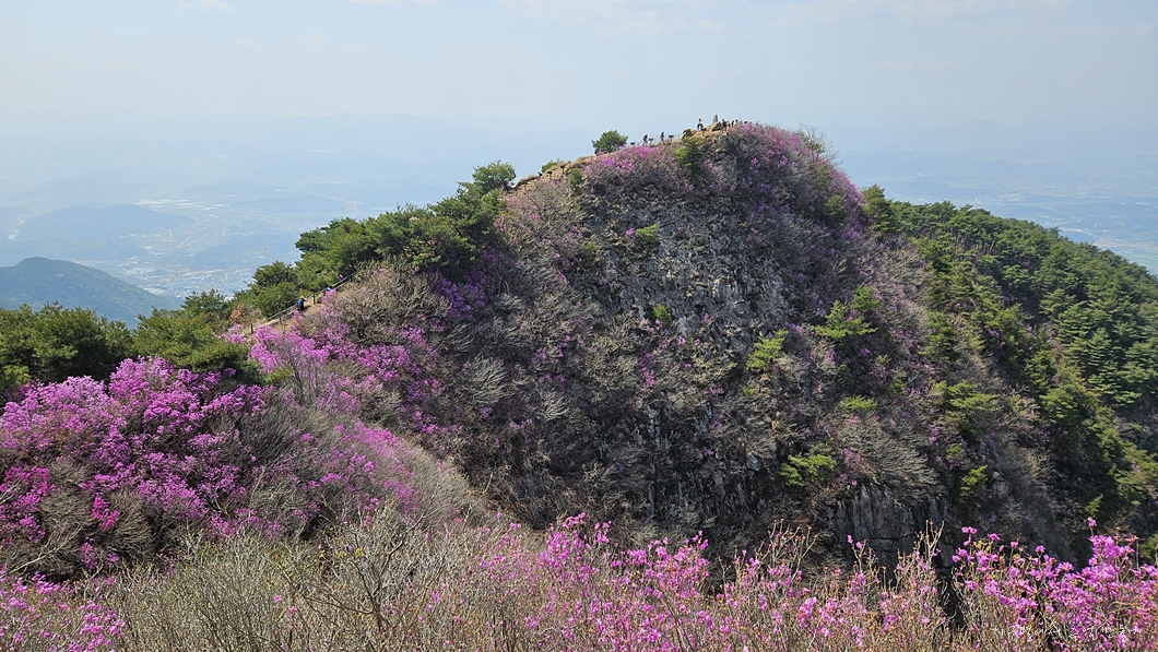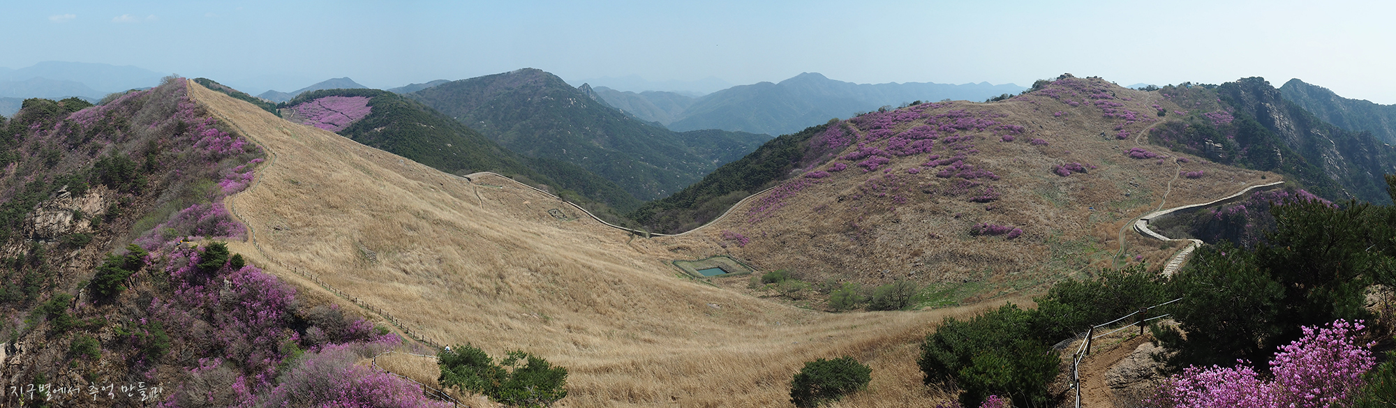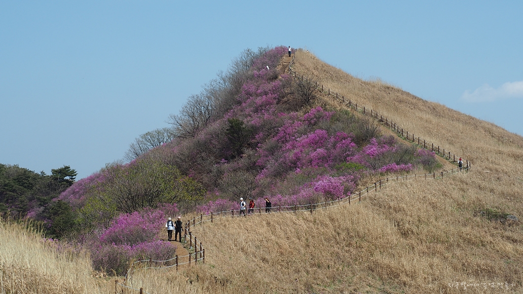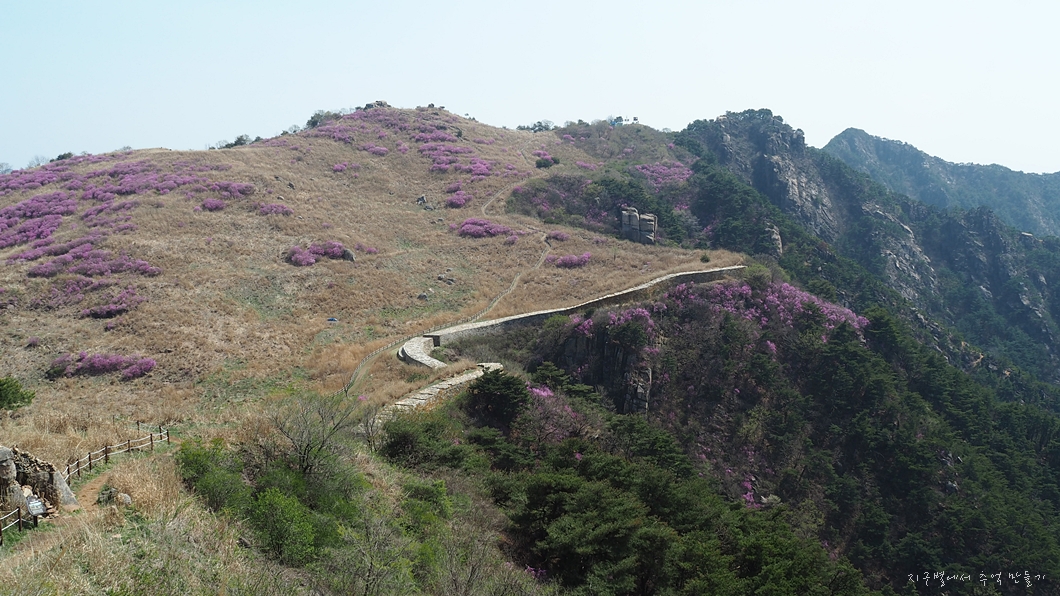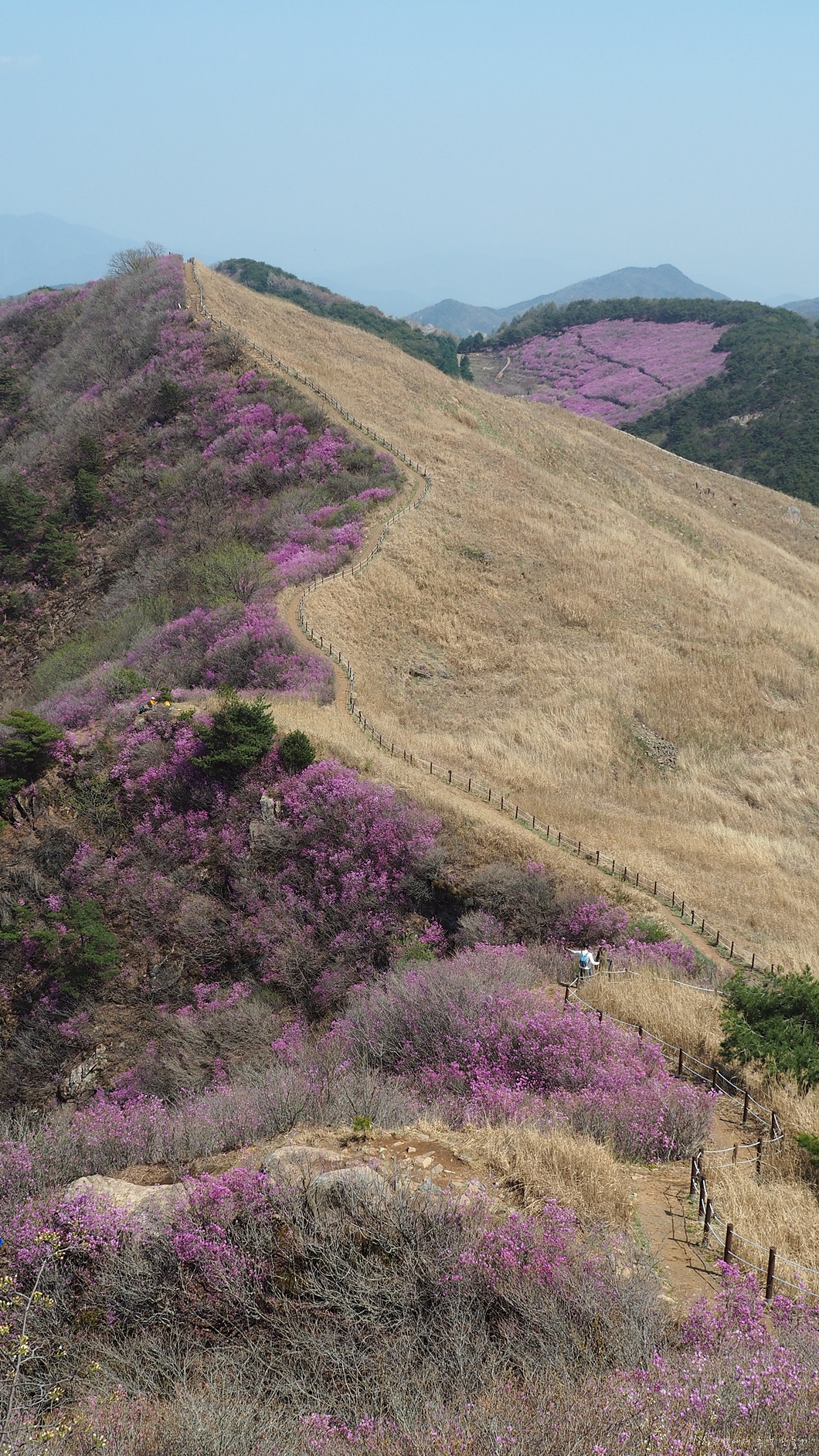 화왕산은 억새로 유명하지만 제 눈에는 봄 진달래 핀 절벽 능선 풍경이 100배 더 멋지게 보인답니다.