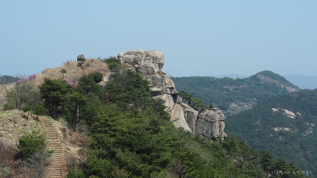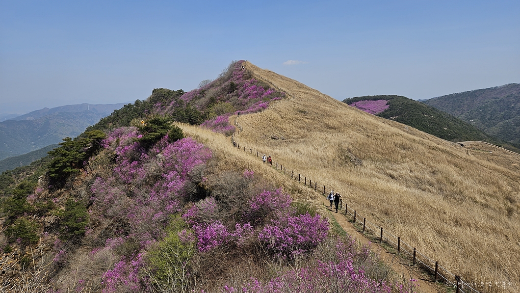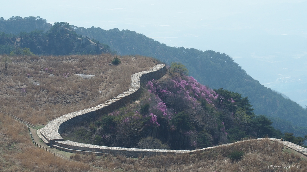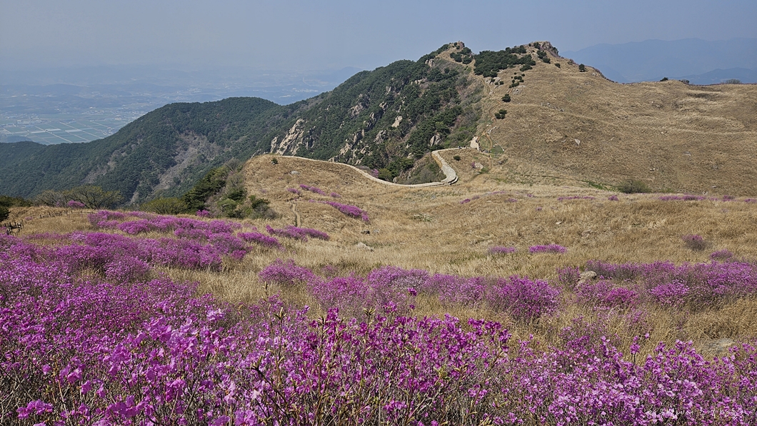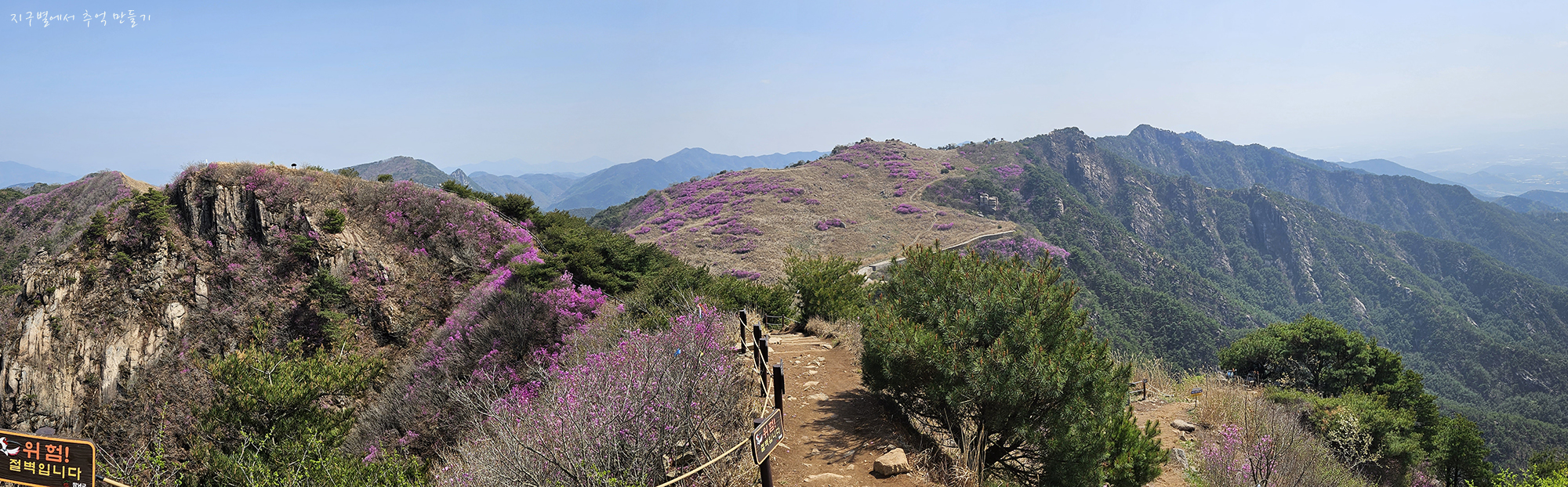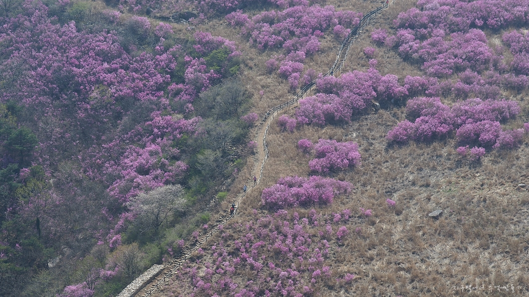 화왕산은 억새로 유명하지만 제 눈에는 봄 진달래 핀 절벽 능선 풍경이 100배 더 멋지게 보인답니다.
