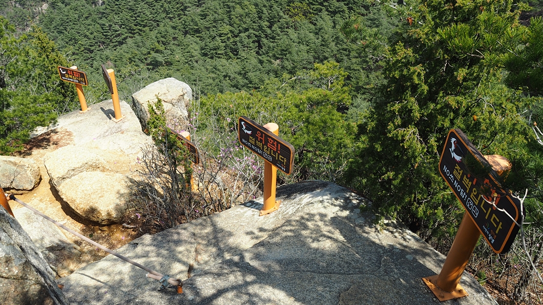 중간에 이렇게 요란스럽게 절벽 표시를 한 곳이 있는데 정작 이보다 더 위에 진짜 위험한 절벽 구간에는 아무런 표시도 없답니다.