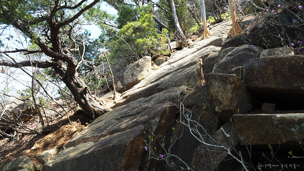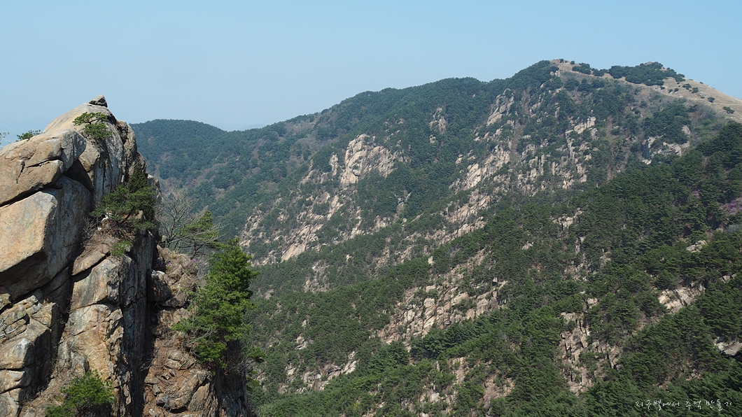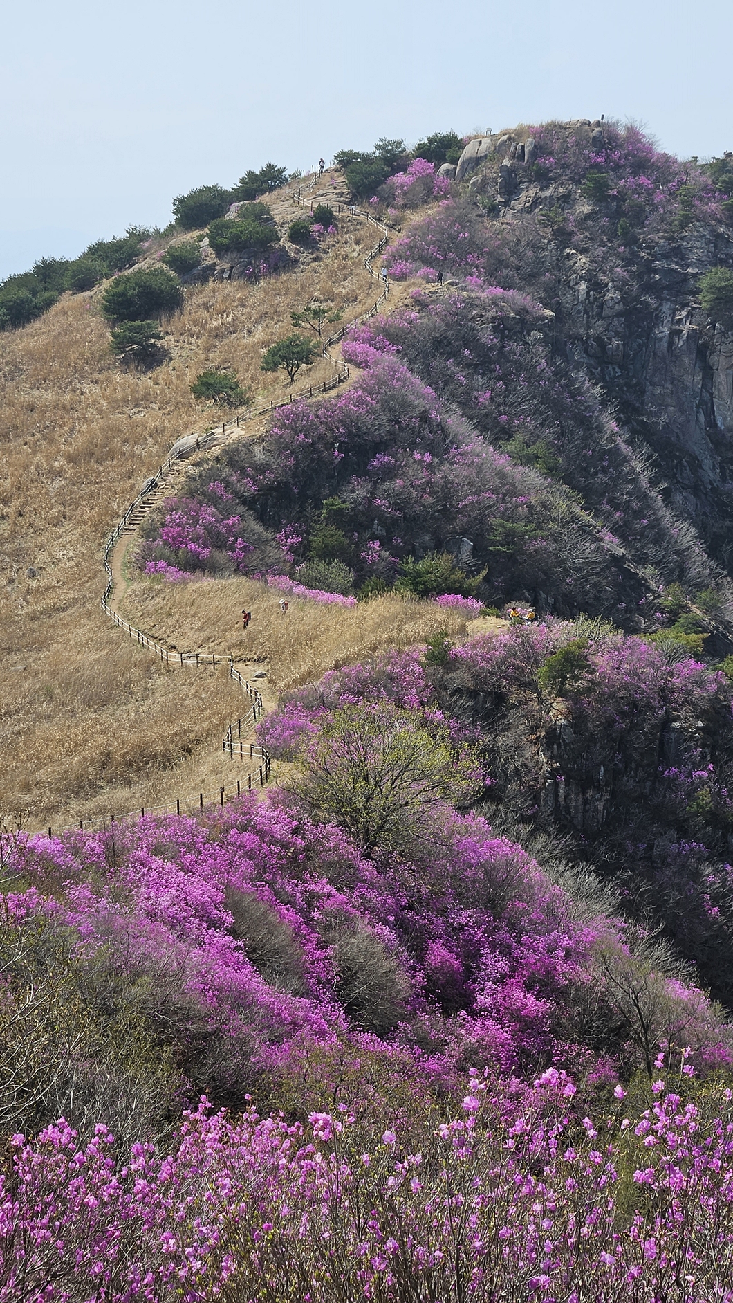 오늘 현재 진달래는 바람에 조금 떨어지긴 했지만 예쁜 모습 그대로 능선 절벽 자락을 곱게 물들이고 있었네요.